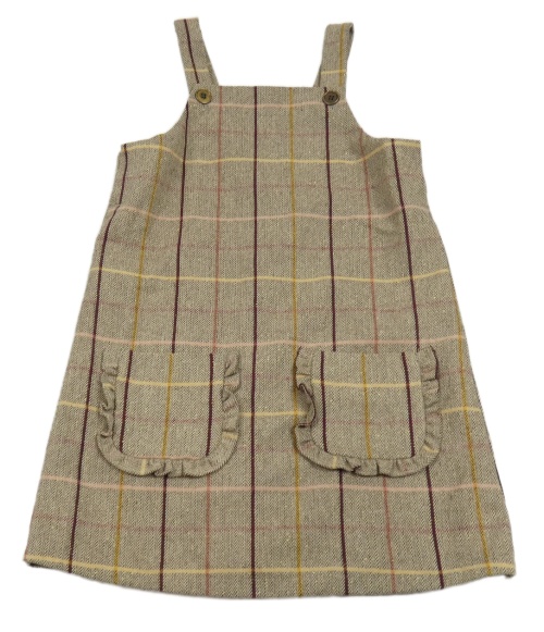 Béžovo-vínovo-žluté vzorované kostkované třpytivé laclové vlněné šaty Tu