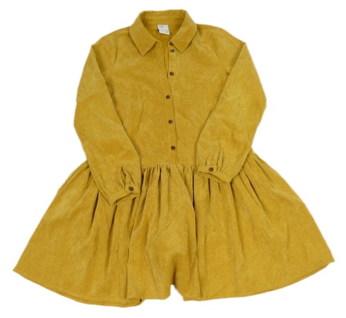 Hořčicové sametové žebrované šaty s límečkem