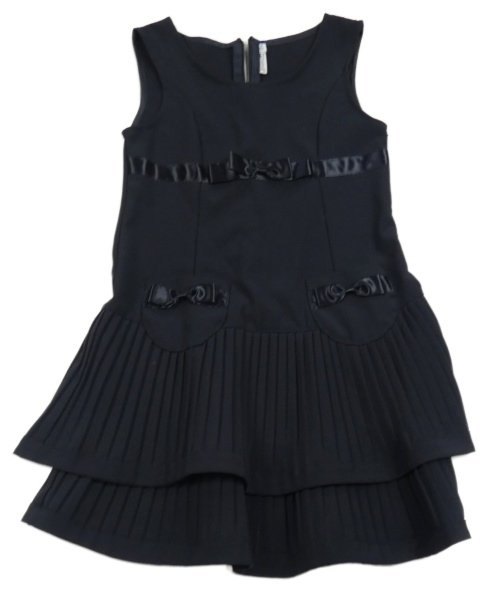 Tmavomodré šaty s plisovanou sukní a mašlemi