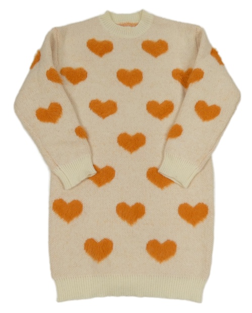Smetanovo-oranžové svetrové šaty se srdíčky Shein