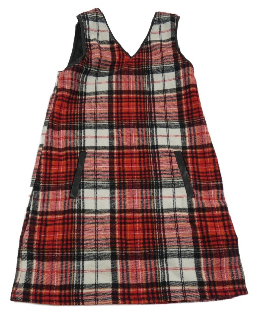 Červeno-bílo-černé kostkované vlněné šaty Tu
