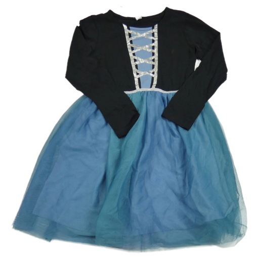 Černo-modro-modrozelené bavlněno/tylové šaty s tištěným šněrováním Tu