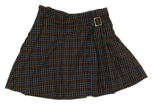 Černo-modro-oranžová kostkovaná skládaná sukně s přezkou Zara