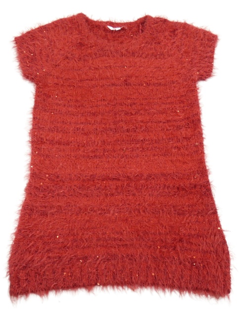 Červené pletené chlupaté šaty s flitry Miss E-vie