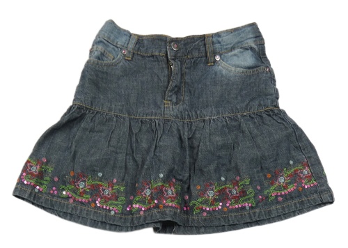 Tmavomodrá riflová sukně s výšivkami a flitry YIGGA