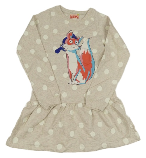 Světlebéžové melírované puntíkaté teplákové šaty s liškou Kids