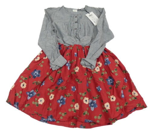 Nové - Šedo-červené šaty s květy a volánky Name it
