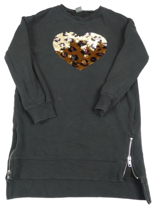 Antracitové teplákové šaty se srdcem z překlápěcích flitrů Next