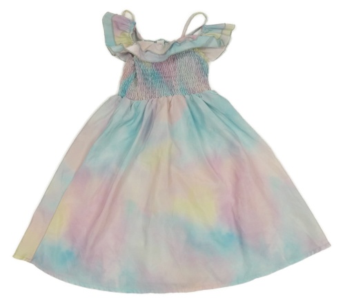 Duhové batikované šaty se žabičkováním a volánky SHEIN