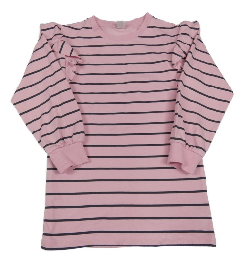 Světlerůžovo-černé pruhované teplákové šaty s volánky