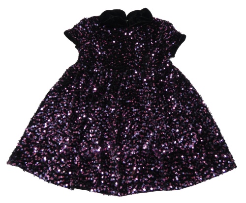 Černo-fialové sametovo/flitrové šaty s límečkem