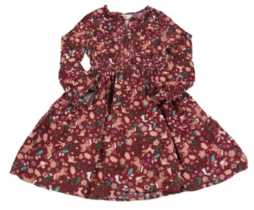 Vínové vzorované manšestrové šaty s liškami s květinami C&A