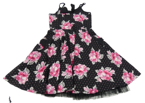 Černé puntíkaté cargo plátěné šaty s růžemi a mašlemi Matalan