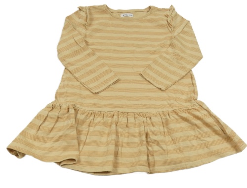 Béžovo-hnědá pruhovaná šatová tunika s volánky sinsay