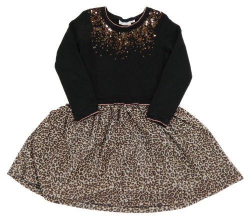 Černo-stříbrno-béžové teplákové šaty s flitry a sukní s leopardím vzorem