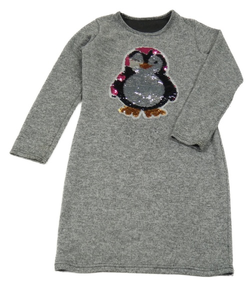 Šedé pletené šaty s tučňákem z flitrů