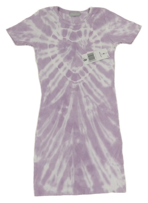 Nové - fialovo-bílé batikované žebrované elastické šaty se srdíčkem Matalan