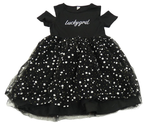Černé šaty s nápisem a tylovou sukně s puntíky Shein