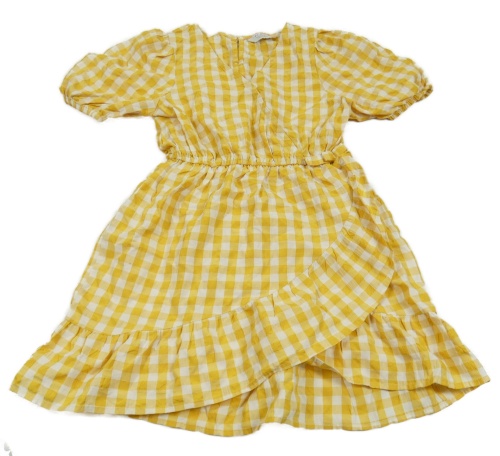 Okrovo-bílé kostkované šaty s volánkem a mašlí PRIMARK