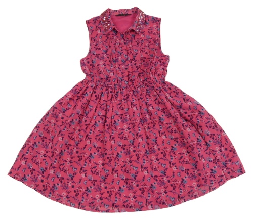 Tmavorůžové šaty s kytičkami a motýlky a límečkem s flitry George