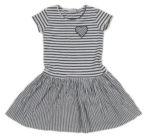 Bílo-tmavomodré pruhované bavlněné šaty se srdíčkem