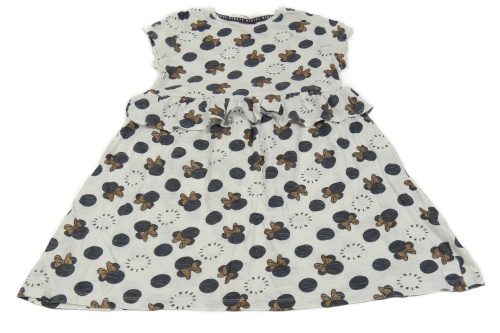 Bílo-tmavomodré puntíkaté melírované šaty s Minnie a volánkem Disney