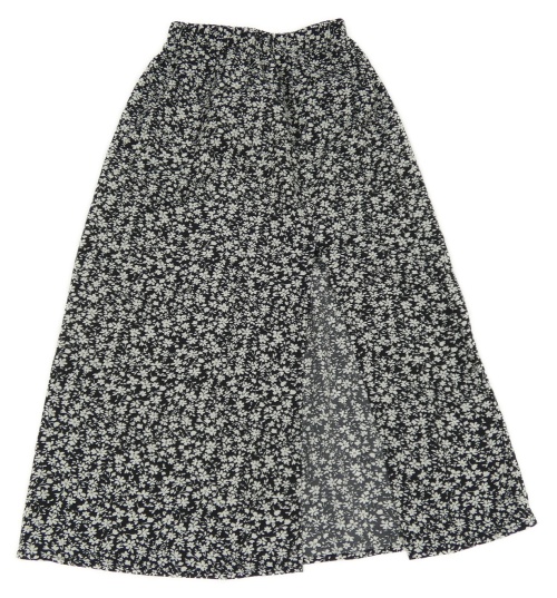 Černo-bílá květovaná maxi sukně s rozparkem Shein