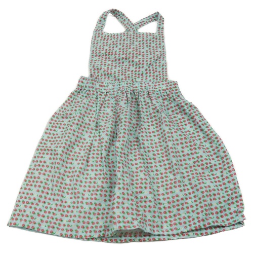Světlemodrá plátěné laclové sukně s jahůdkami