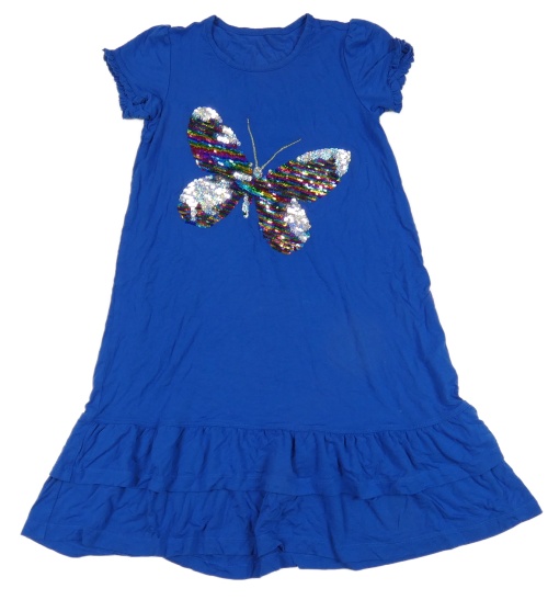Královsky modré šaty s motýlkem z překlápěcích flitrů a volánkem JAKO-O