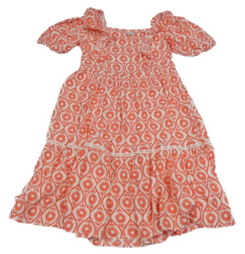 Bílo-korálové květované třpytivé lehké šaty s volánky LC Waikiki