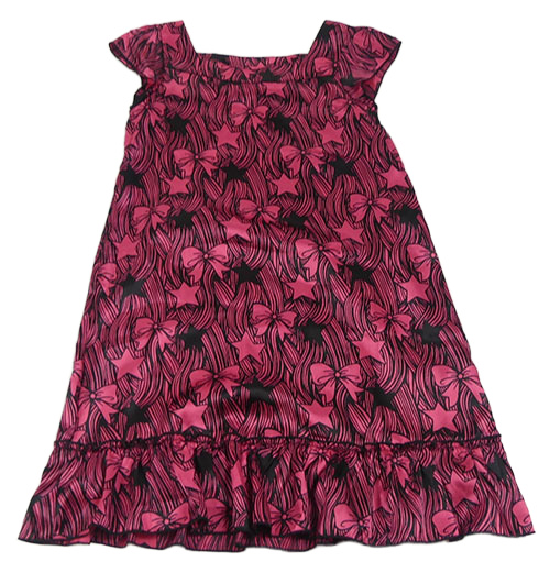 Tmavorůžovo-černé vzorované saténové šaty s mašlemi a hvězdičkami H&M