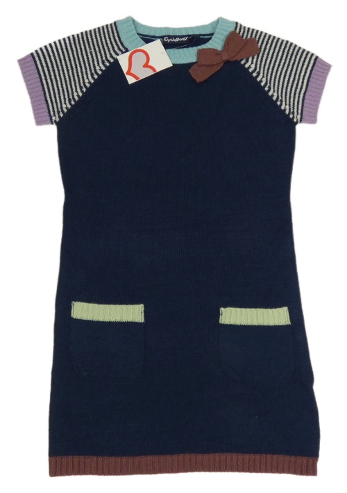 Nové - Tmavomodro-pruhované pletené šaty s barevnými lemy