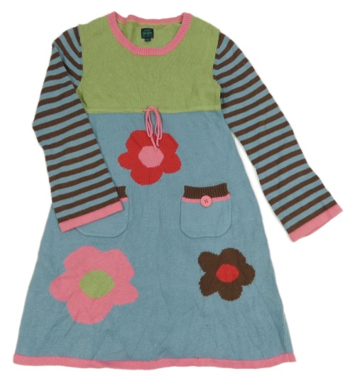 Světlezeleno-modro-pruhované svetrové šaty s kytičkami Mini Boden
