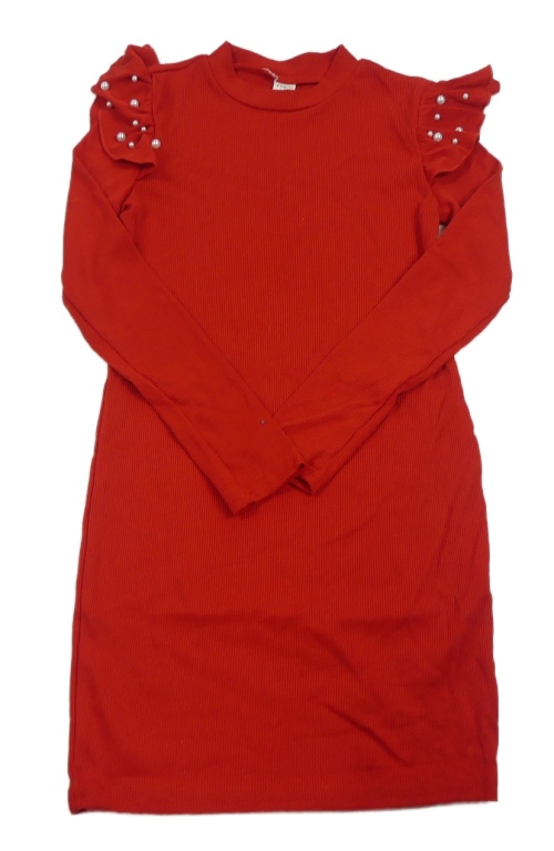 Červené žebrované šaty s volánky s perlami Shein