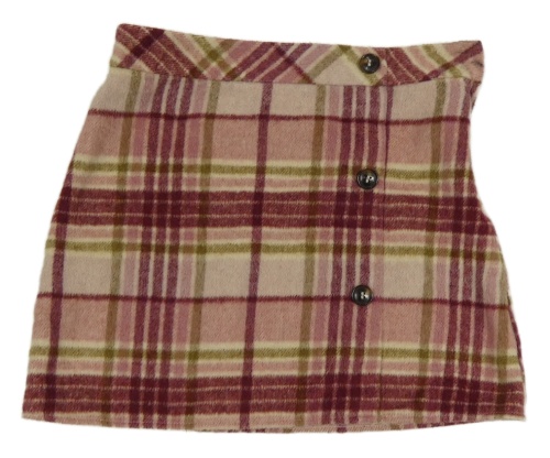 Růžovo-vínovo-khaki kostkovaná vlněná sukně Nutmeg