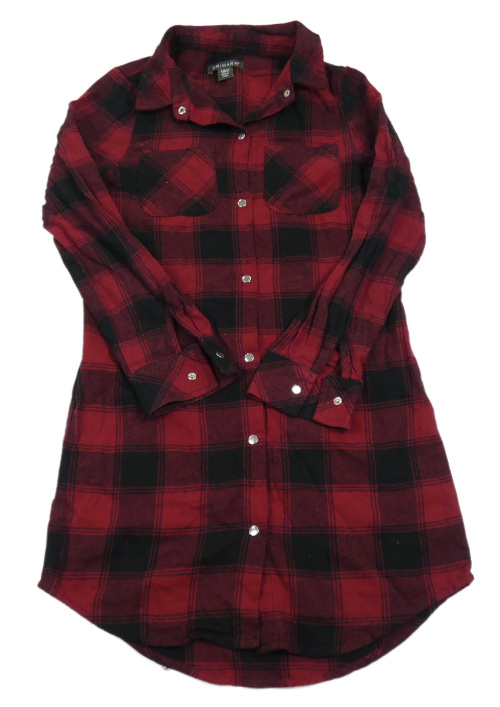 Vínovo-černé kostkované propínací košilové šaty Primark