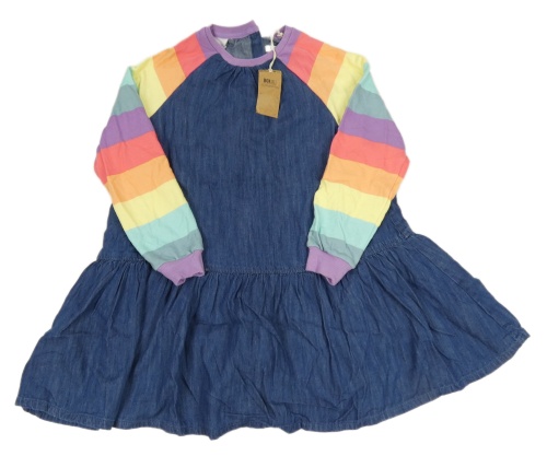 Nové - modré riflové šaty s barevnými pruhovanými teplákovými rukávy Next