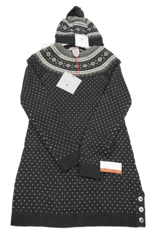 Nové - 2set - Šedé svetrové šaty se vzorem + čepice Lulurain