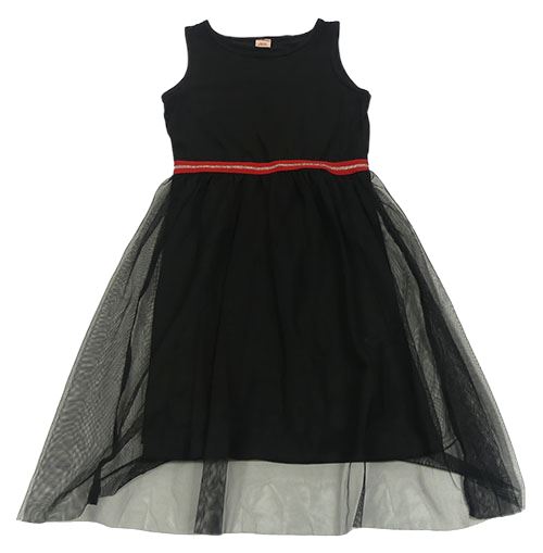 Černé šaty s tylem a červeno-stříbrným pasem Y.F.K.