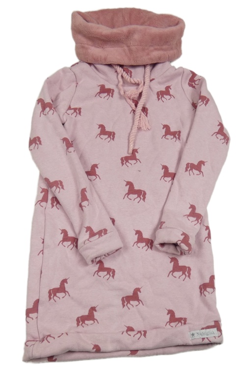 Růžové teplákové zateplené šaty s jednorožci a rolákem