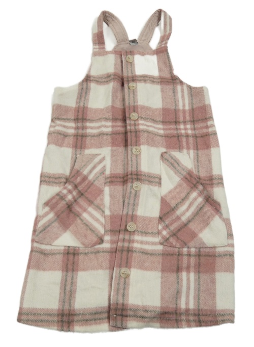 Bílo-růžové kostkované propínací vlněné šaty Tu