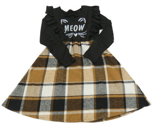 Černo-hnědo-bílé kostkované šaty s kočičkou a volánky SHEIN