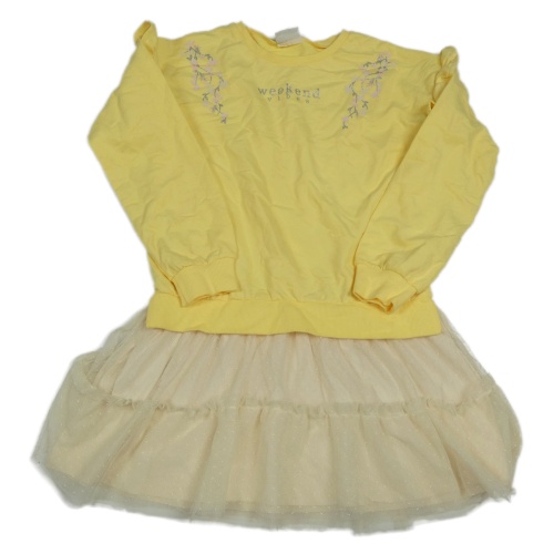 Žluto-smetanové teplákovo/síťované šaty s kytičkami a volánky