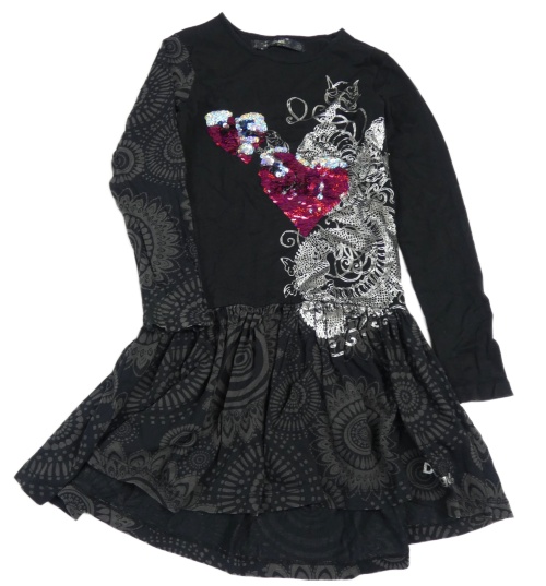 Černé šaty se srdíčky z flitrů a mandalou Desigual