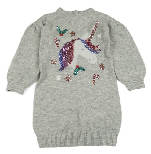 Šedé svetrové šaty s jednorožcem z flitrů Tu