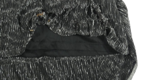 Vady ve spodní části rozpáraná a zatrhané nitky