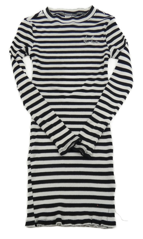 Černo-bílé pruhované žebrované elastické šaty s nápisem Page one young