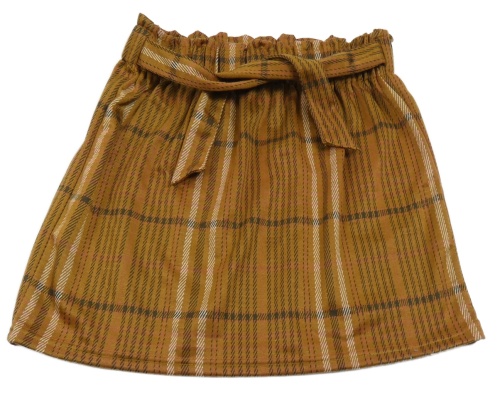 Hnědo-černo-bílo-starorůžová kostkovaná vzorovaná paper bag úpletová sukně se zavazováním BLUE QUEEN