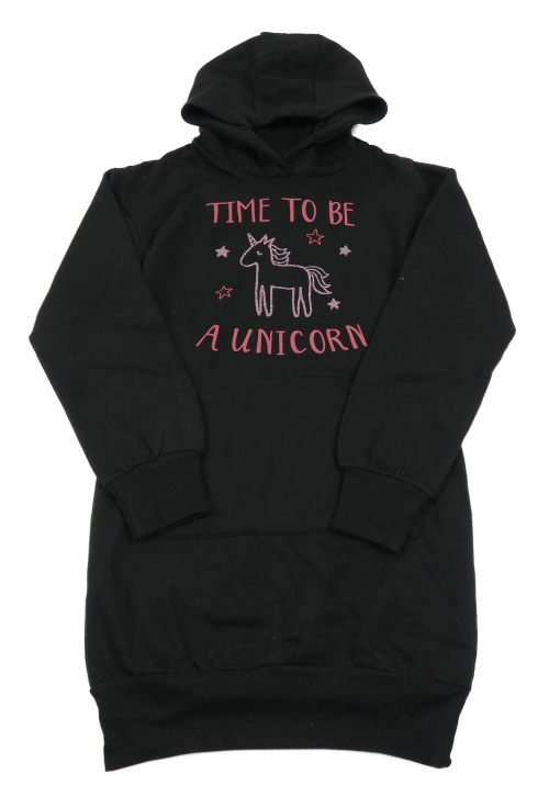 Černé teplákové šaty s jednorožcem a nápisem a kapucí Y.F.K.