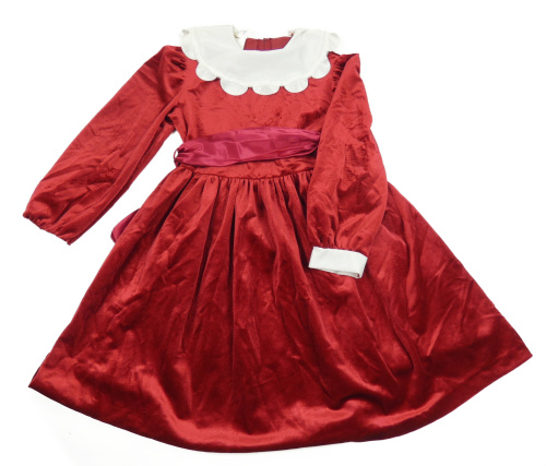 Tmavočerveno-bílé lesklé sametové šaty s límcem a páskem Miss Victoria